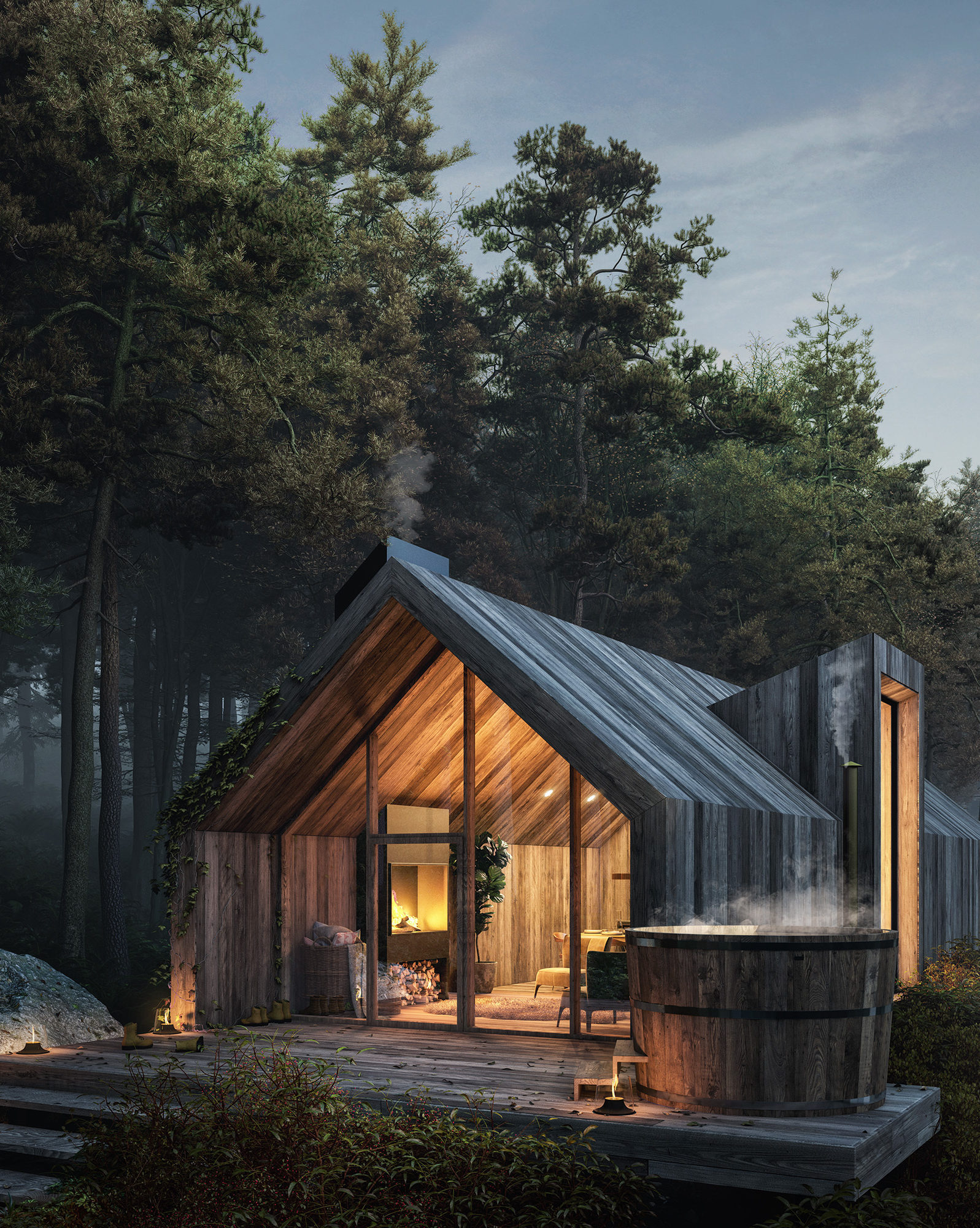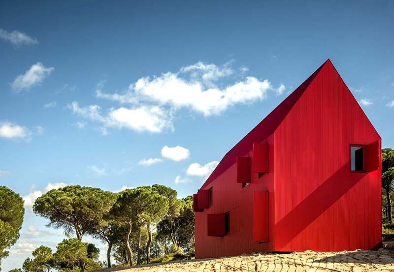 木屋的形狀和顏色設(shè)計主要是為了模糊外部和內(nèi)部空間之間界限。木屋的設(shè)計旨在提供一個...